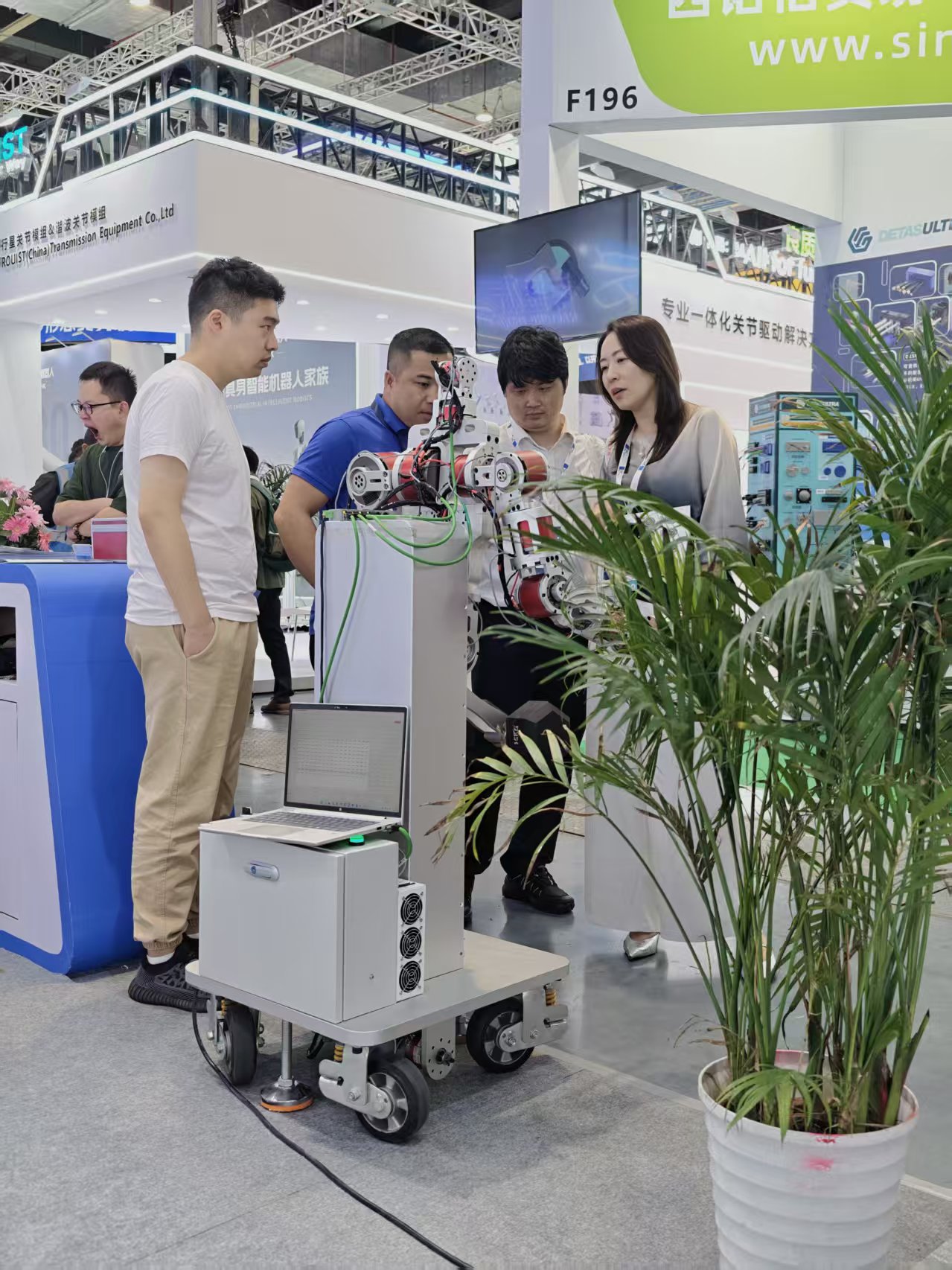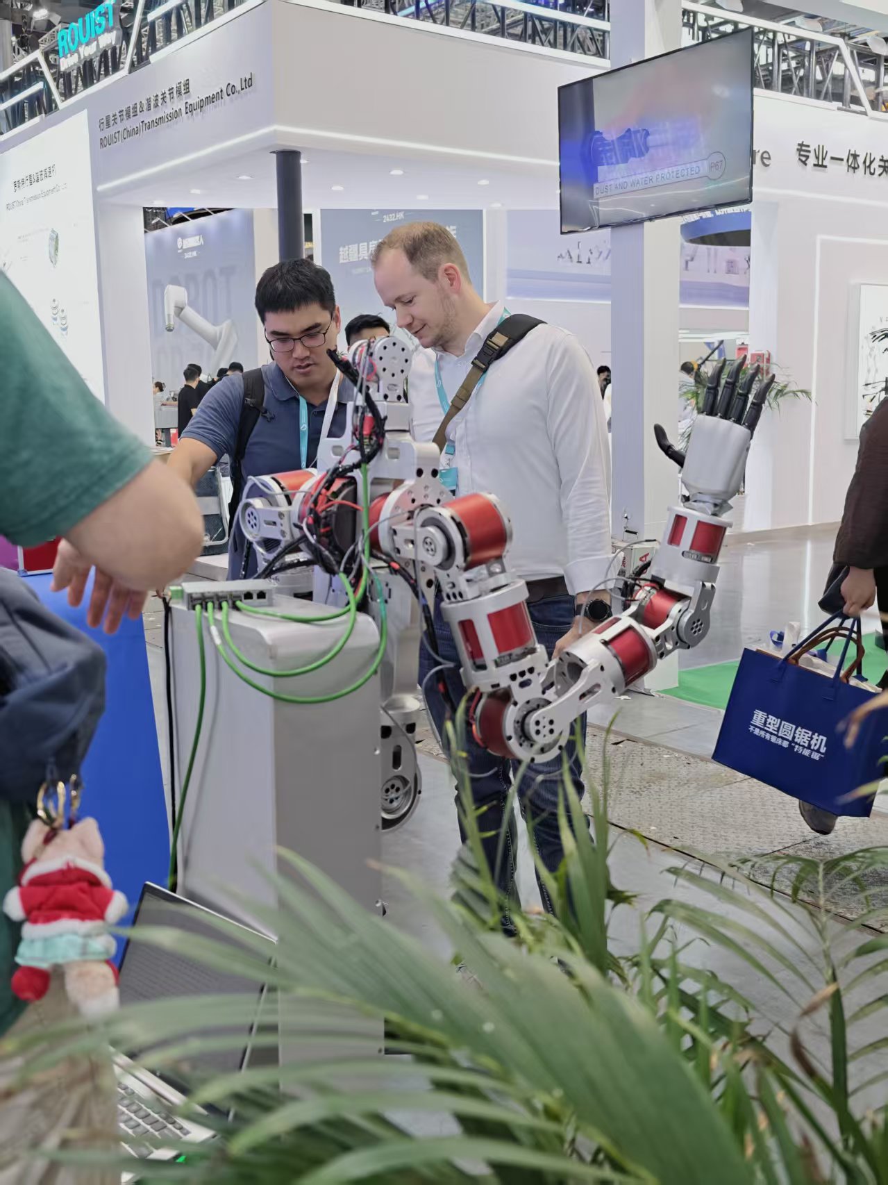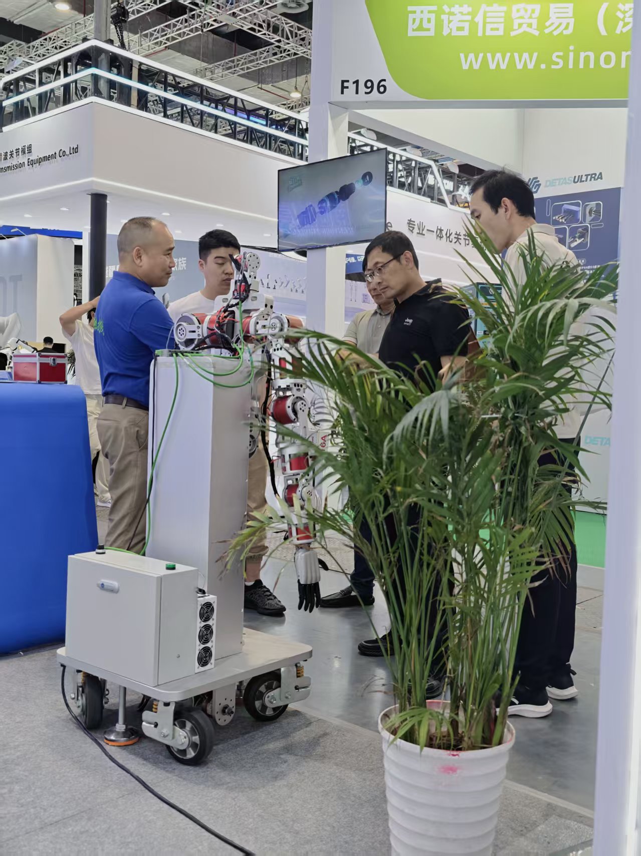 运得动力仅用3款动力模组搭建的大力神受到大家的一致好评。单手举起15公斤的哑铃吸引了许多海内外观众过来参观,